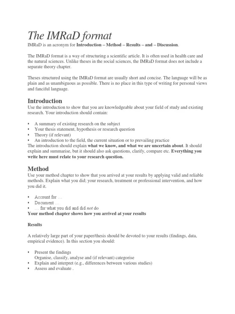 Chapter 3 Imrad Sample - Abstract Imrad Format Example : Terms in this set (4).. Credits to the real owner of the document.full description. It indicates a pattern or format rather than a complete list of headings or components of. This paper describes the effect of various students and faculty authoring partnerships on the use of the imrad. Please fill this form, we will try to respond as soon as possible. Bariis lake in bulan sorsogon.